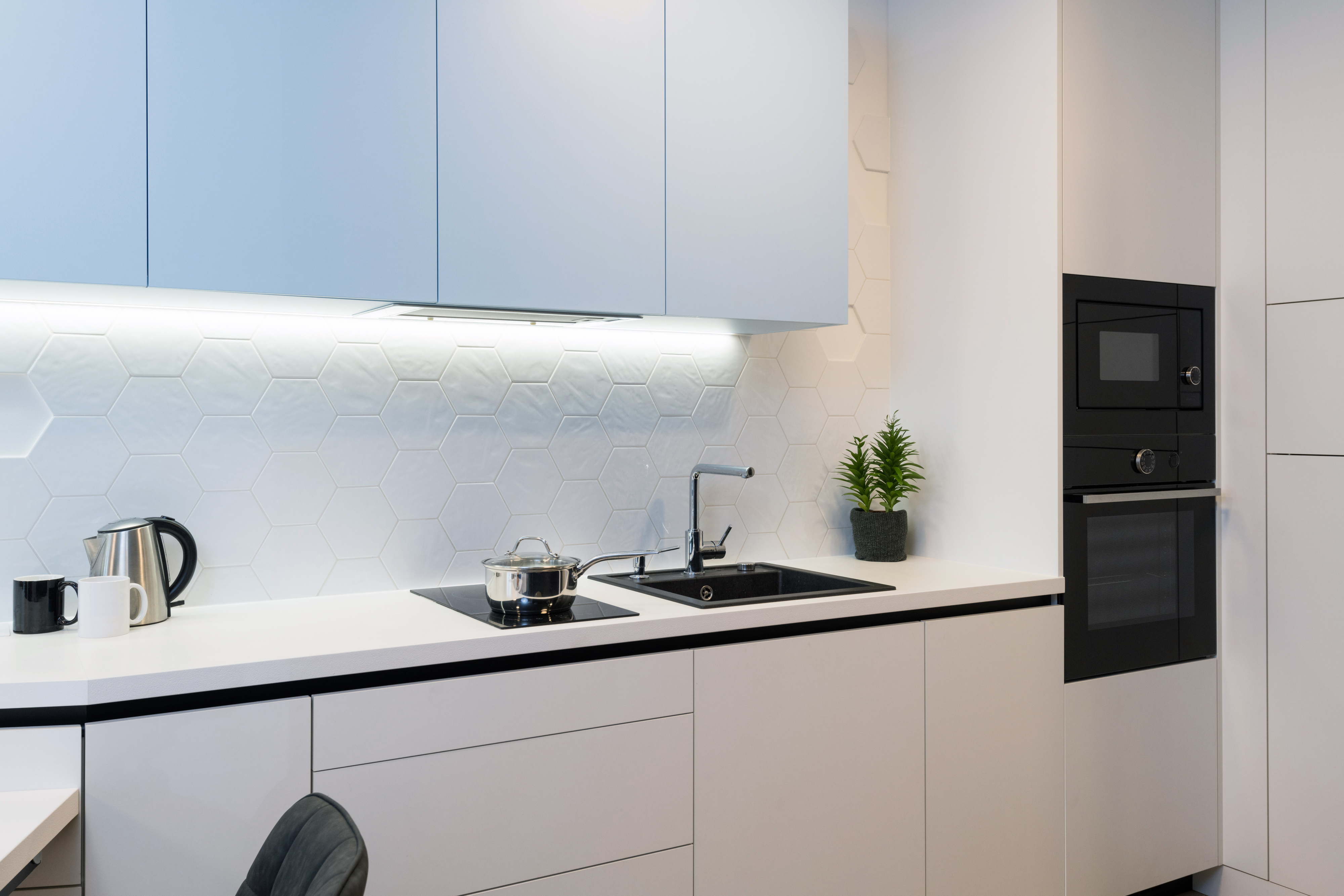 Niezależnie od tego, czy jest to mała kuchnia z salonem w bloku, czy też mała kuchnia zamknięta, aby wydawała się większa, powinna być zaaranżowana w jasnych kolorach. Dlaczego? Ponieważ jasne barwy optycznie powiększają przestrzeń. Dobrze sprawdzi się oczywiście biel, jednak nie jest to jedyny kolor, który dodaje dodatkowej przestrzeni. Można też sięgnąć po beże i delikatne, pastelowe odcienie, np. szarości.
