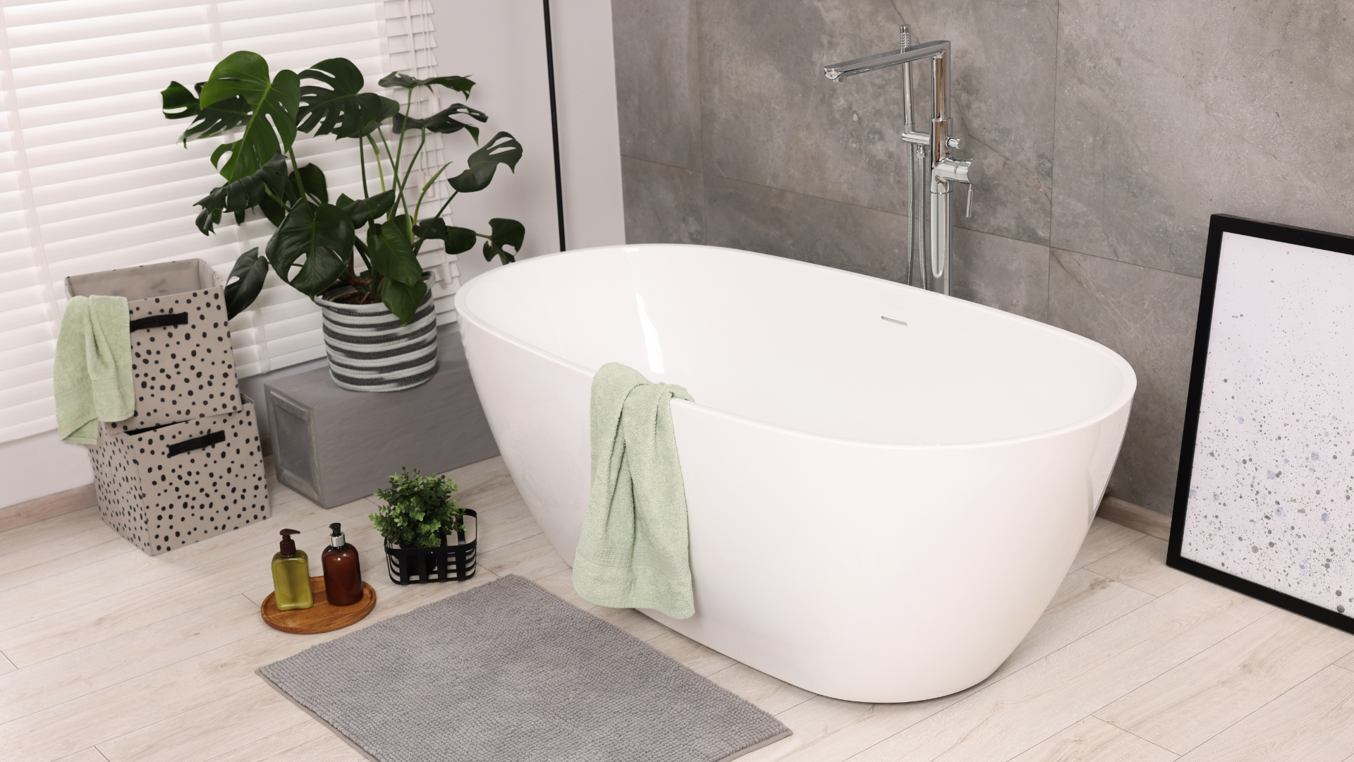- tekstylia dopasowane kolorystyczne do aranżacji łazienki;