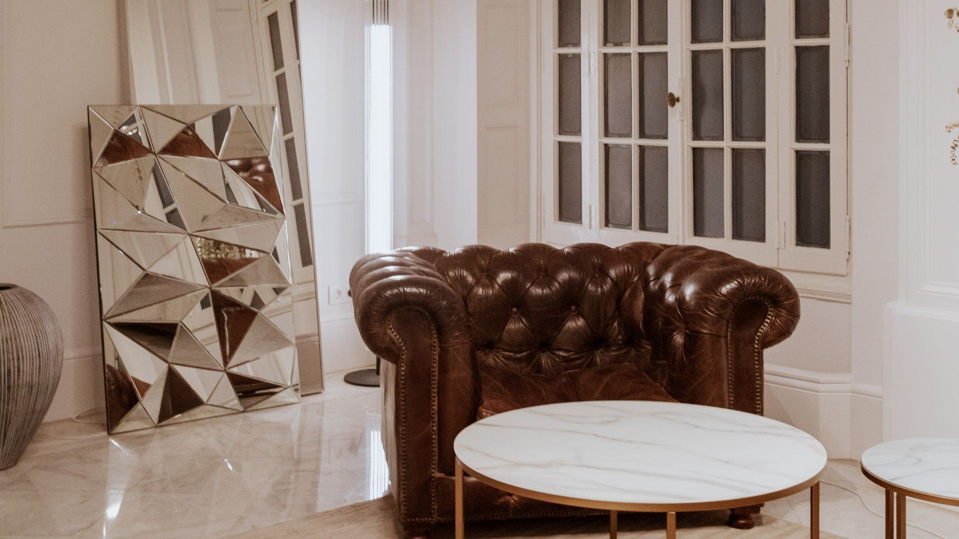 - meble: sekretem pięknych wnętrz glamour są wysokojakościowe, charakterystycznie wykończone meble takie jak elegancka konsola, sofa chesterfield, witryna albo kredens,