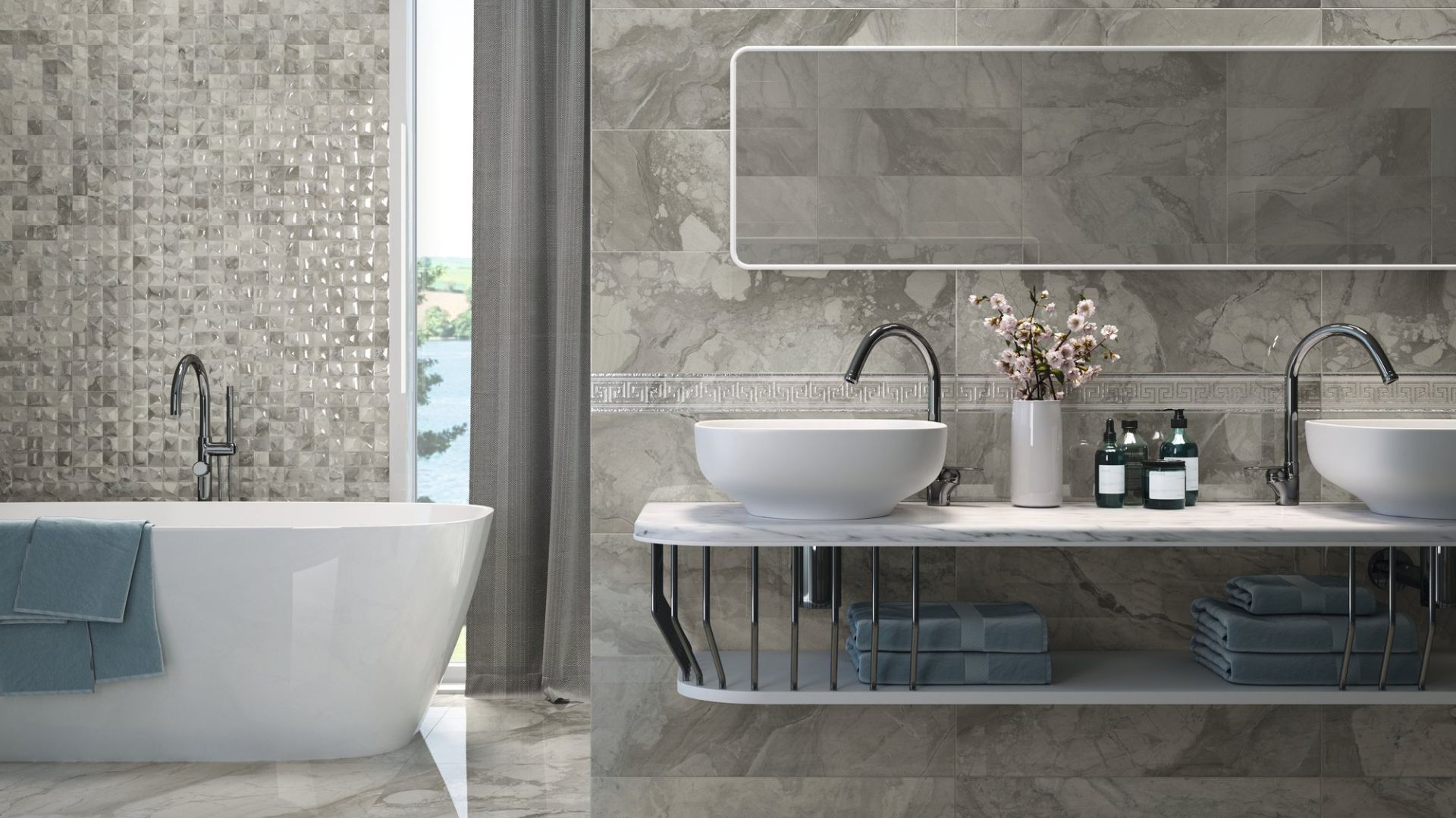 - materiały: marmur i onyks w łazience albo na podłodze, a jeśli chodzi o tekstylia i meble: satyna, welur, atłas, może być również żakard,