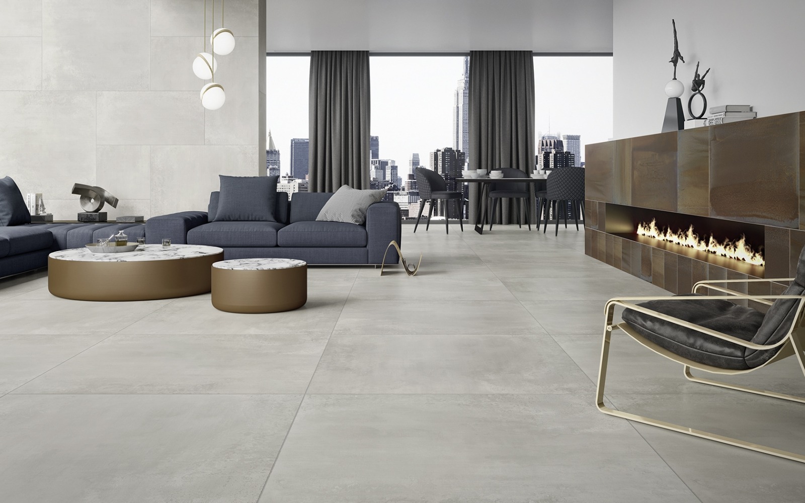 Jest już w trendach od kilku sezonów i nie zamierza ustąpić swojego zaszczytnego miejsca żadnemu innemu rozwiązaniu aranżacyjnemu. Płytki imitujące surowy beton odnajdą się idealnie we wnętrzach industrialnych, gdzie są zestawiane z metalowymi meblami i cegłą na ścianie. Płytki betonopodobne pojawiają się ponadto w nowoczesnych aranżacjach, szczególnie w wielkim formacie, gdzie mała ilość fug potęguje efekt przestronności. Dobrym przykładem takiego rozwiązania jest kolekcja Bottega Acero, Porcelanosa. Betonowa podłoga w nowoczesnej stylistyce będzie pasować do białych frontów i czarnych tapicerowanych mebli. Doskonale prezentować się będzie również tam, gdzie pojawia się drewno. Te dwa materiały wzajemnie się uzupełniają – drewno ociepla beton, a beton ochładza drewno – idealny duet.