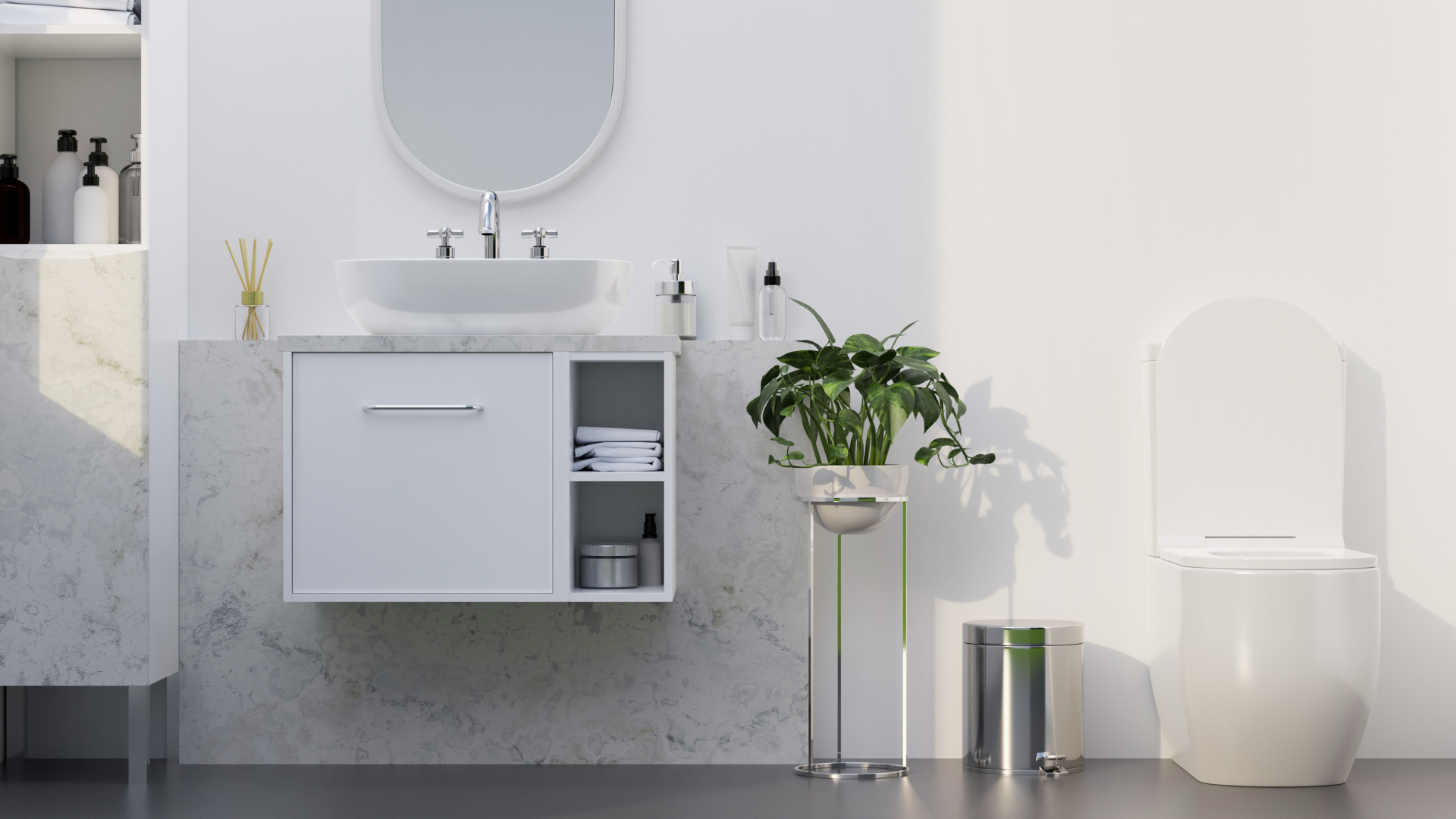 Płytki marmuropodobne w nowoczesnej łazience wyposażonej w wannę wolnostojącą i złotą artmaturę, pięknie potęgują efekt luksusu. Przykładem jest kolekcja Marmi, od Lafenza. Świetnie odnajdzie się w aranżacjach glamour, angielskich, ale i industrialnych. Warto pamiętać, że płytki imitujące marmur posiadają zarówno satynowe jak i matowe wykończenie, na których mniej widoczne są smugi. Jasna płytka z imitacją marmuru z połyskiem sprzyja aranżacji małych pomieszczeń, optycznie je powiększając. W takim otoczeniu świetnie prezentuje się biała ceramika - chociażby wolnostojąca wanna Mona ale też złota armatura i dodatki. Chcąc nieco ocieplić aranżacje, można zdecydować się na drewniane fronty szafek i wprowadzić do wnętrza nieco zieleni.