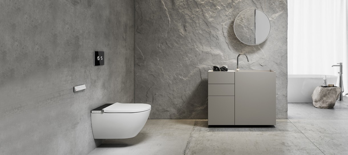 Toaleta z funkcją mycia nie jest większa od zwykłej, standardowej misy WC. Zajmuje tyle samo miejsca, więc nie trzeba się zastanawiać nad jej rozmieszczeniem. Dostępna jest w wersji podwieszanej, a więc ze stelażem podtynkowym. Zajmuje więc jeszcze mniej miejsca niż klasyczny kompakt. Ponadto, łatwiej jest utrzymać ją w czystości ze względu na mniejszą ilość powierzchni. Seria Mera Comfort od Geberit, wyróżnia się kompaktowym rozmiarem i minimalistycznym designem.