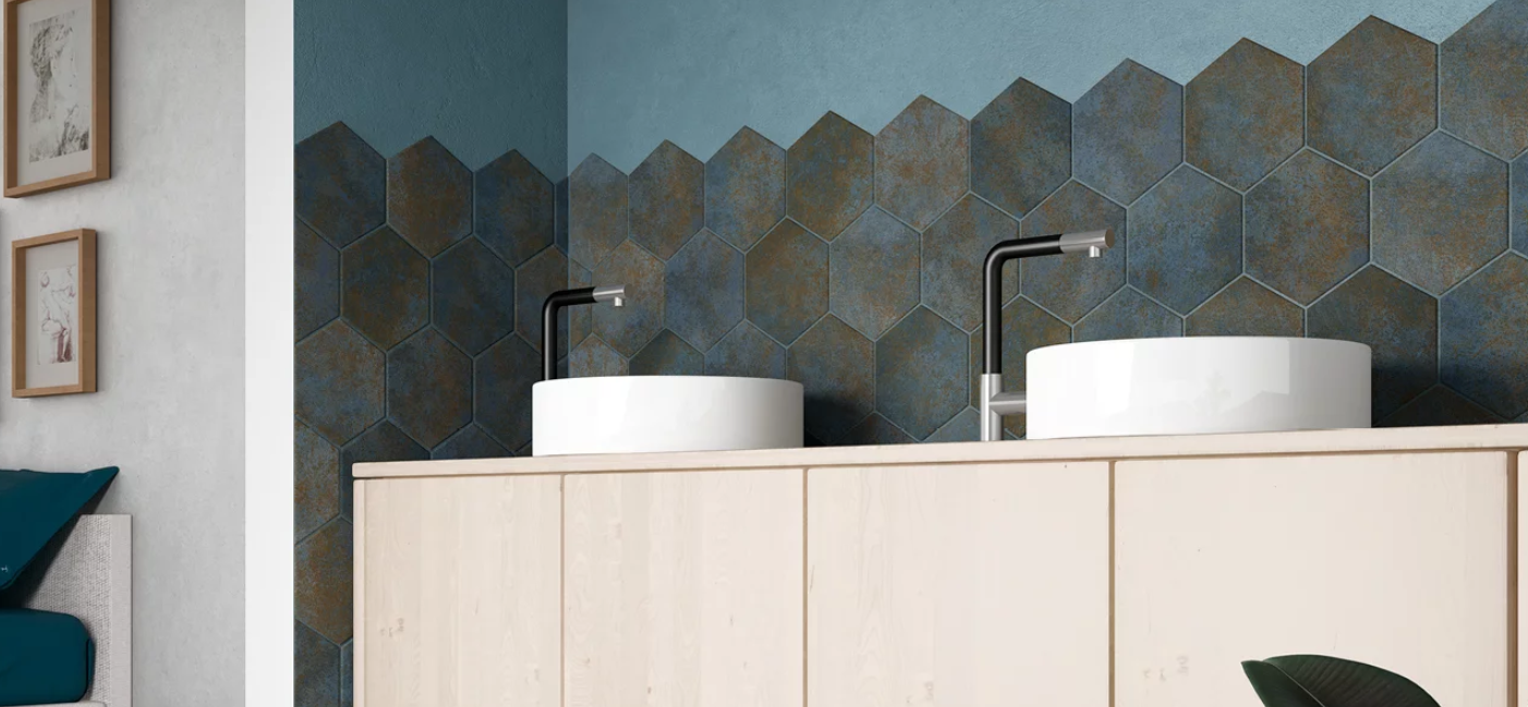 Płytki ceramiczne w wielu projektach mają kształt heksagonów i rombów. Pojawiają się w nowoczesnych aranżacjach jako elementy dekoracyjne. Łącząc je ze sobą w różny sposób, można uzyskać bardzo oryginalne wzory, a ostatecznie nieszablonowe i ciekawe wnętrze.