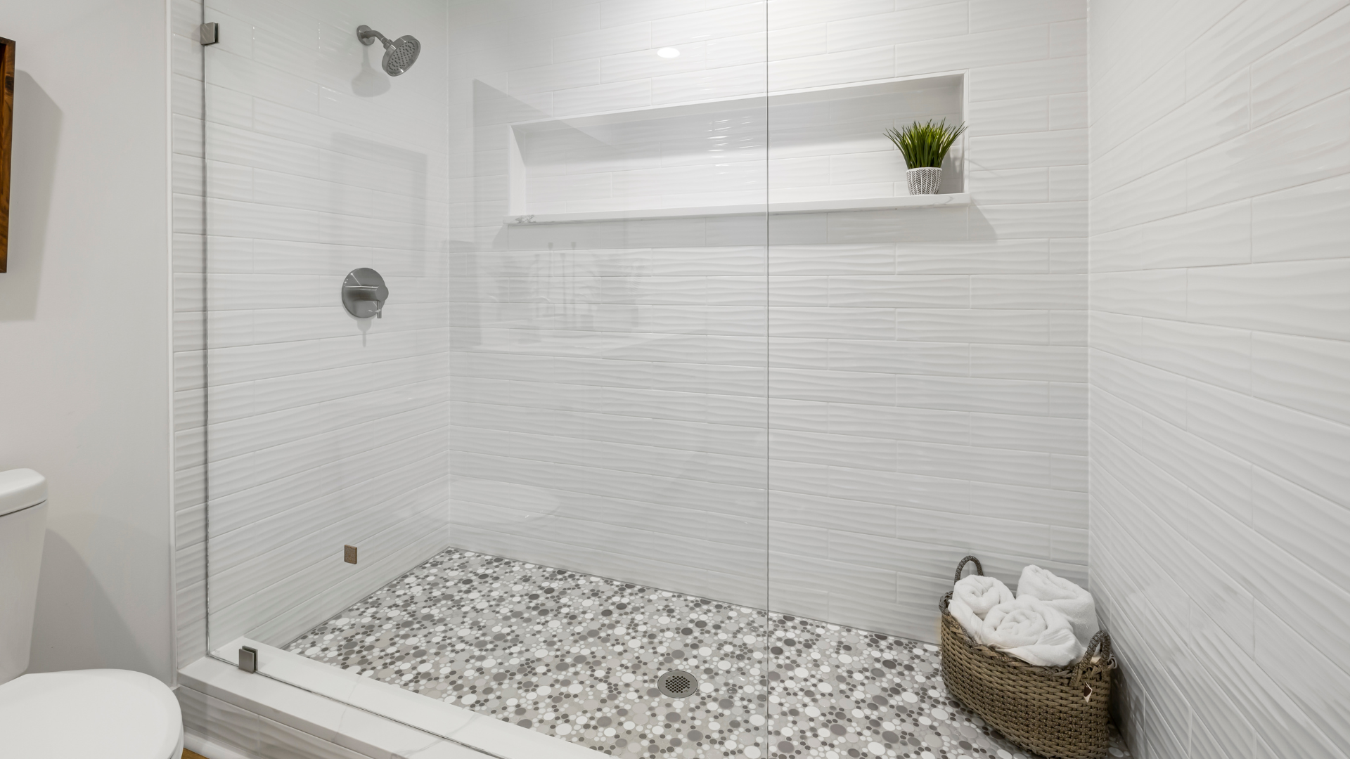 Mając wnękę w łazience i chcąc wykonać w niej prysznic, nie potrzeba zbyt wielu elementów. Zwykła kabina prysznicowa składa się z brodzika, drzwi prysznicowych i armatury. Alternatywą dla niej jest oczywiście prysznic typu walk-in, w którym nie ma brodzika, a drzwi zastąpione są szklaną szybą. Kabina prysznicowa we wnęce jest z trzech stron ograniczona ścianami. Nie wymaga stosowania brodzika, a odpływ wykonuje się w podłodze, jak w prysznicu walk-in. Może być to odpływ liniowy, tak jak np.Blueline marki HushLab lub punktowy w zależności od indywidualnych preferencji wizualnych, ale i grubości podłogi. Odpływ punktowy jest na pewno mniejszy, liniowy jest dłuższy, ale również można go świetnie ukryć w posadzce. Jeśli zaś chodzi o aspekty techniczne, to odpływy liniowe mają odwodnienie na poziomie 67 mm, z kolei punktowe 62 mm.