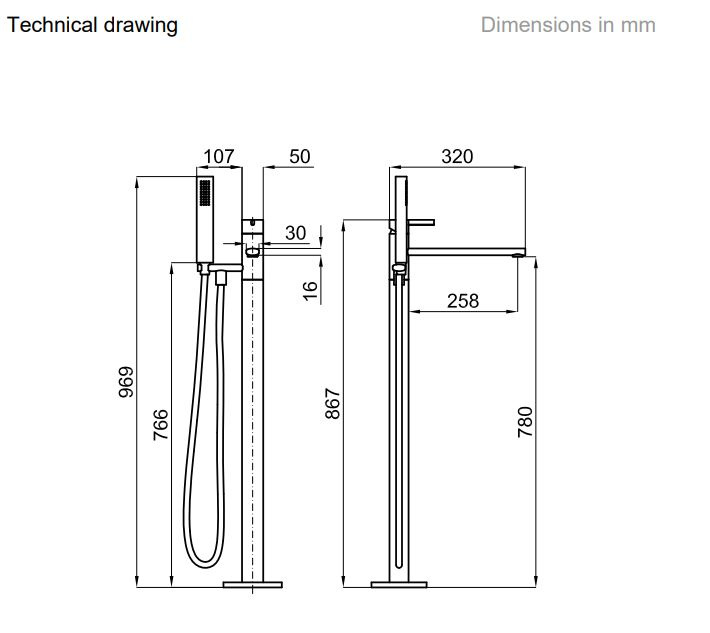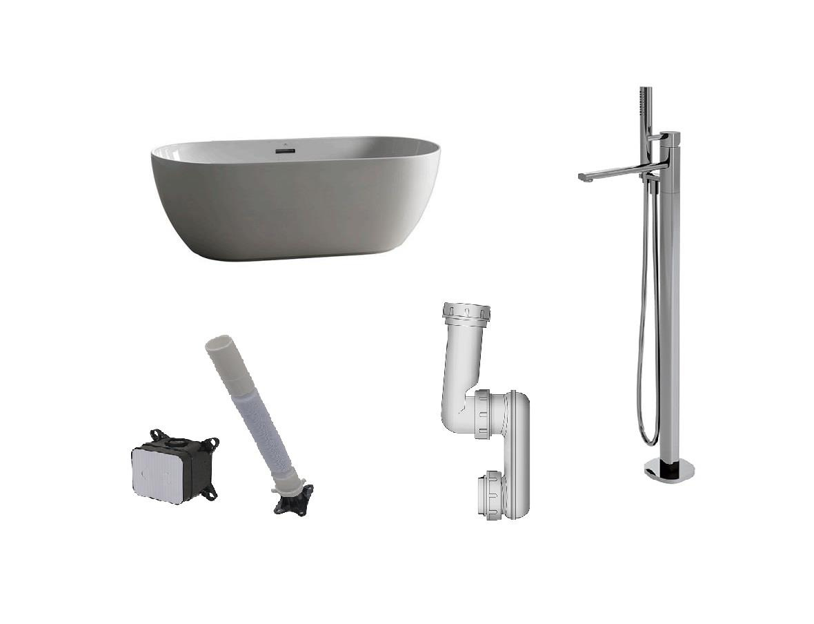 Bateria jednouchwytowa wannowo-prysznicowa montowana na podłodze z wężem elastycznym 100137847 - N199999496 i słuchawką prysznicową COTA 100038634 - N158760001.