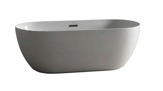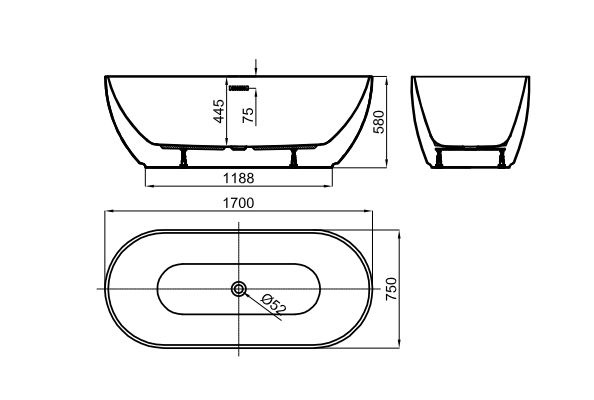 Akrylowa wanna LOUNGE o wymiarach 170x75 cm w kolorze białym z przelewem i korkiem na środku. Elegancka wanna wolnostojąca z zaokrąglonymi bokami o nowoczesnym designie.