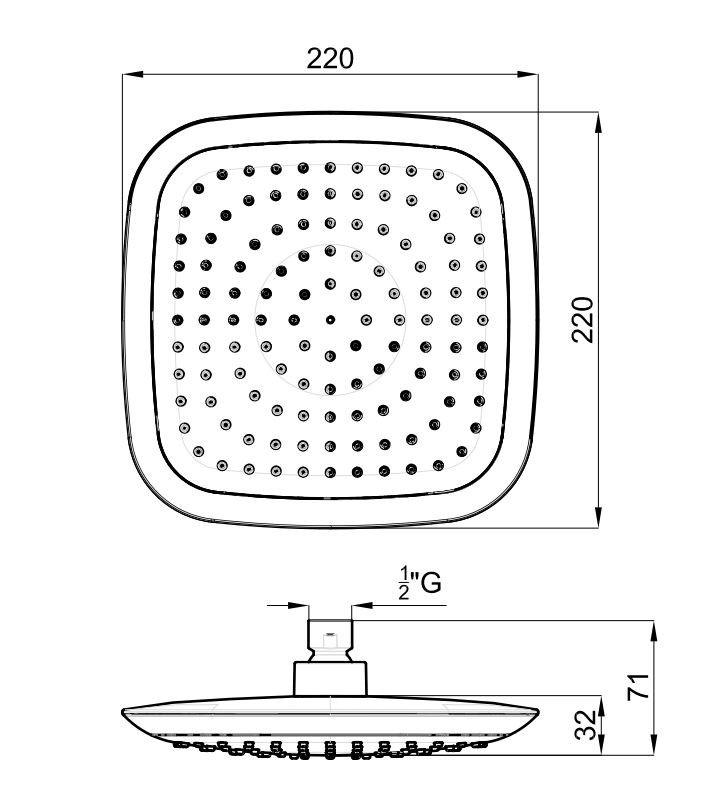 Deszczownica Urban PS od producenta Noken. Deszczownica kwadratowa o zaoblonych krawędziach w roziarze 22x22cm, w kolorze chrom. Do montażu ściennego, ramię długości 40cm w zestawie. Gumowe nakładki na zewnętrznej stronie deszczownicy ułatwiają usuwanie kamienia i utrzymanie czystości. Deszczownica dedykowana do pozostałych produktów z serii Urban.