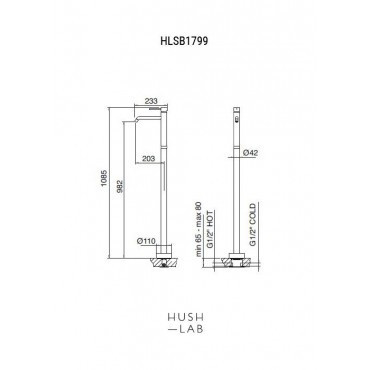 Stojąca wysoka bateria łazienkowa jednouchwytowa o wysokości 1085 mm. Wysokość wylewki: 982 mm Długość wylewki liczona z trzonem baterii: 233 mm Długość samej wylewki: 203 mm Średnica trzonu baterii 110 mm Kod katalogowy: HLSB1799. Seria SIENA dostępna jest w 5 kolorach: chrom (HLSI1799), czarny mat (HLSB1799), biały mat (HLSW1799), ossidato (HLSO1799), złoty (HLSG1799).