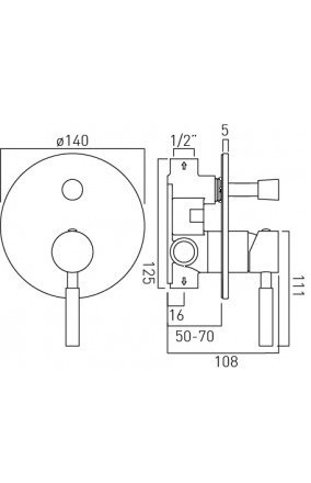 - Bateria prysznicowa jednouchwytowa (IND-ORI147A-BRN). Do montażu podtynkowego, głębokość: 50-70 mm, głowica ceramiczna,
