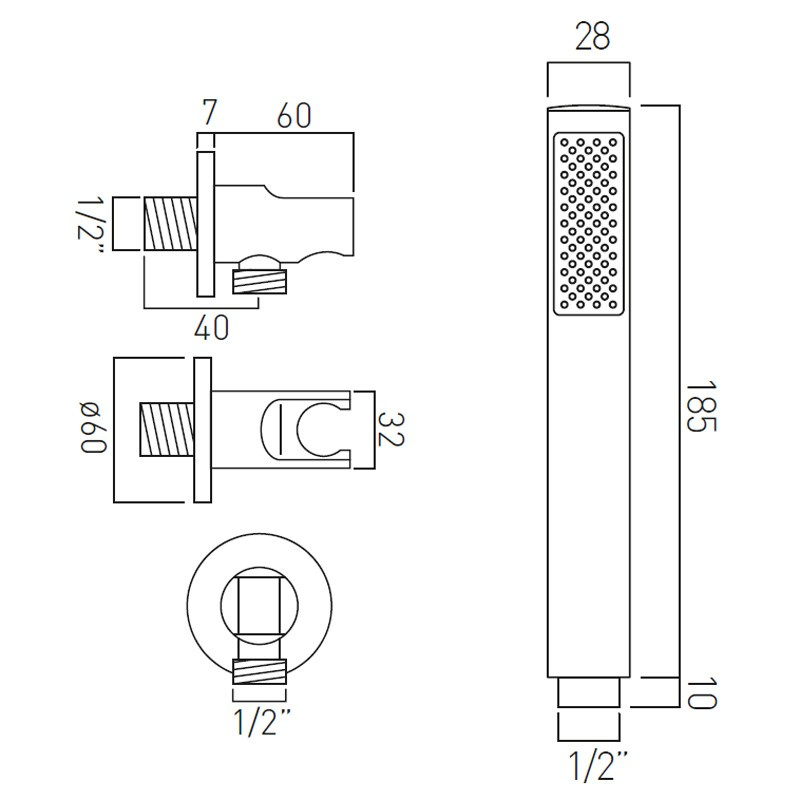 - Słuchawka prysznicowa z uchwytem (IND-SFMKWO/RO-BRN) punktowym z przyłączem węża i wąż prysznicowy Smooth-Flex o długości 150 cm,