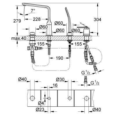 Veris 4- otworowa bateria wannowa firmy Grohe.
