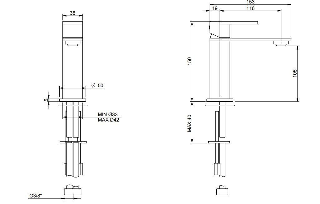 Bateria stojąca umywalkowa z kolekcji 3.6 od Treemme. Bateria jednouchwytowa, wykonana ze stali nierdzewnej. Przepływ wody 6l/min. Bateria w kolorze inox szczotkowane.
