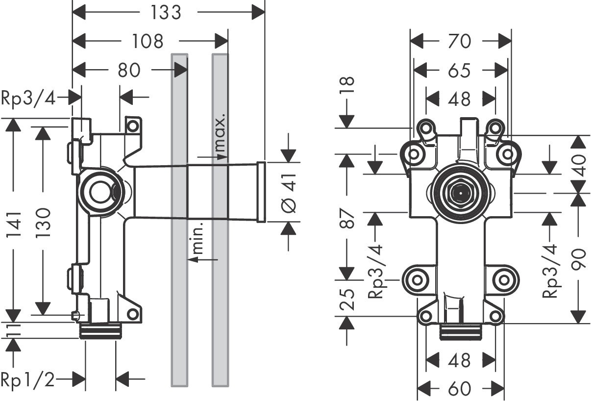 Element podtynkowy do modułu prysznicowego w instalacji łączonej jako przewód wody, przyłącza z lewej i prawej.