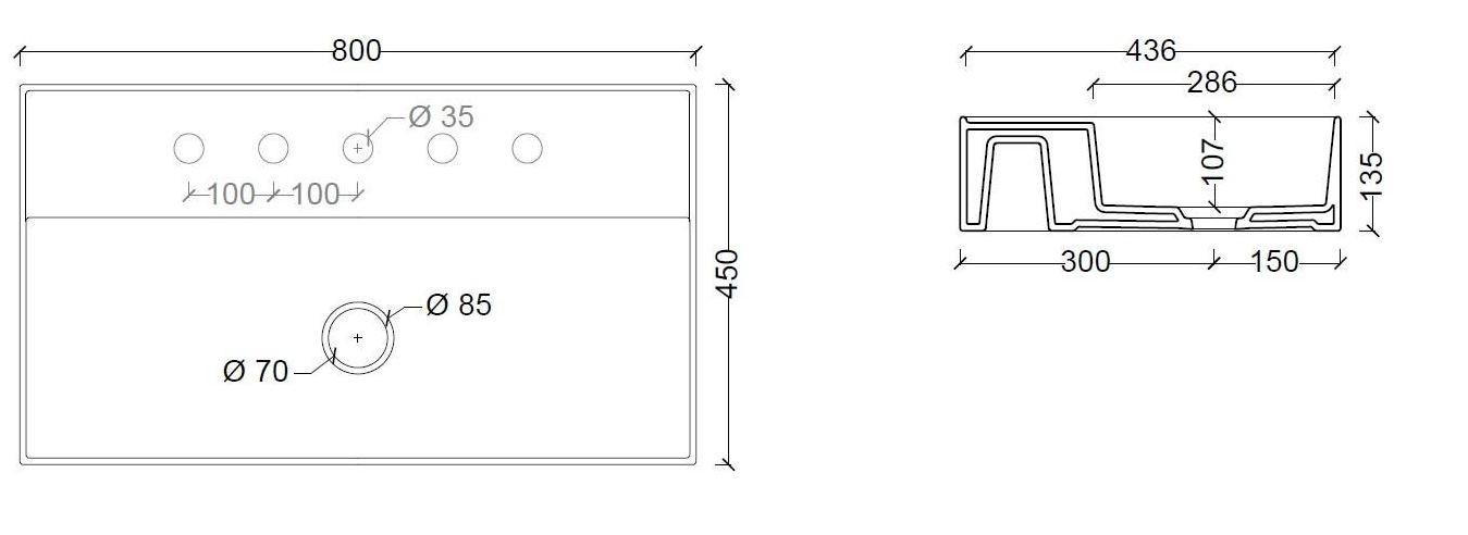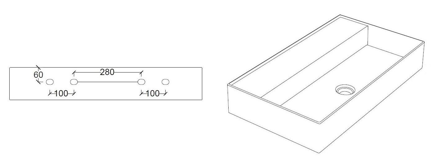 INLOVE 80S Umywalka wisząca 45x80 biała z otworem
