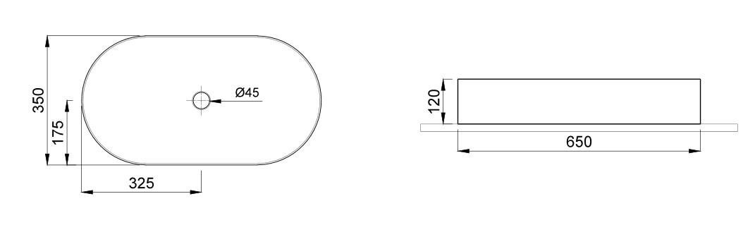 Nowoczesna umywalka owalna w rozmiarze 65x35 cm.