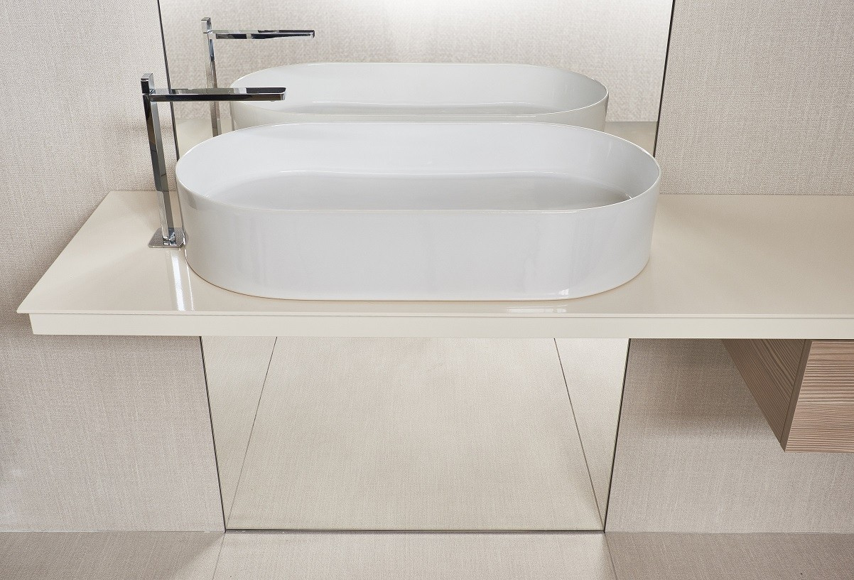Seria SLIM to 3 kształty umywalki. Do wyboru jest okrągła SLIM 40 o średnicy 40 cm, prostokątna SLIM 60 o wymiarach 60x37 oraz owalna SLIM 65 o wymiarach 65x35 cm. Umywalki z serii SLIM proponowane są bez otworów na baterie, ale istnieje możliwość ich wybicia przez firmę współpracującą – zapytaj o szczegóły.