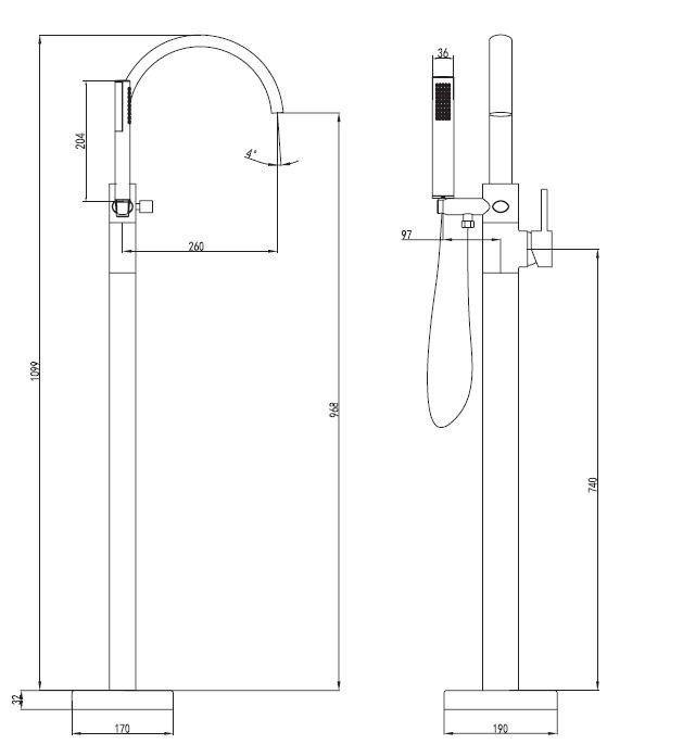 LUKKA Bateria wannowa wolnostojaca czarna mat