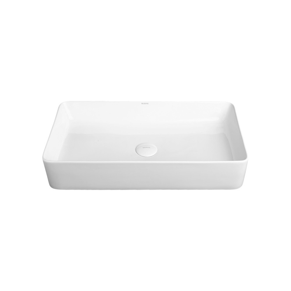KISS 61 prostokątna umywalka w rozmiarze 35x61cm, kolor biały mat firmy Selestio. Produkt dedykowany do montażu nablatowego, w komplecie z armaturą sztorcową (wychodzącą z blatu) wysoką, bądź baterią podtynkową (wychodzącą że ściany).