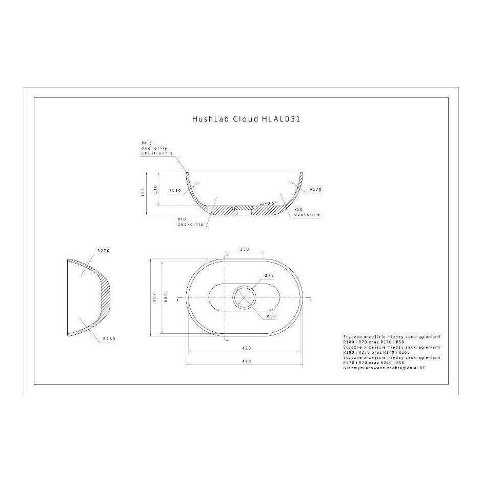 Umywalka łazienkowa CLOUD to propozycja od marki HushLab dostępna w rozmiarze 45x32 cm.