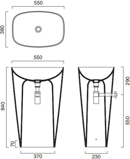 Umywalka bez otworu i przelewu, dlatego należy do niej dopasować korek nadający się do umywalek bezprzelewowych.