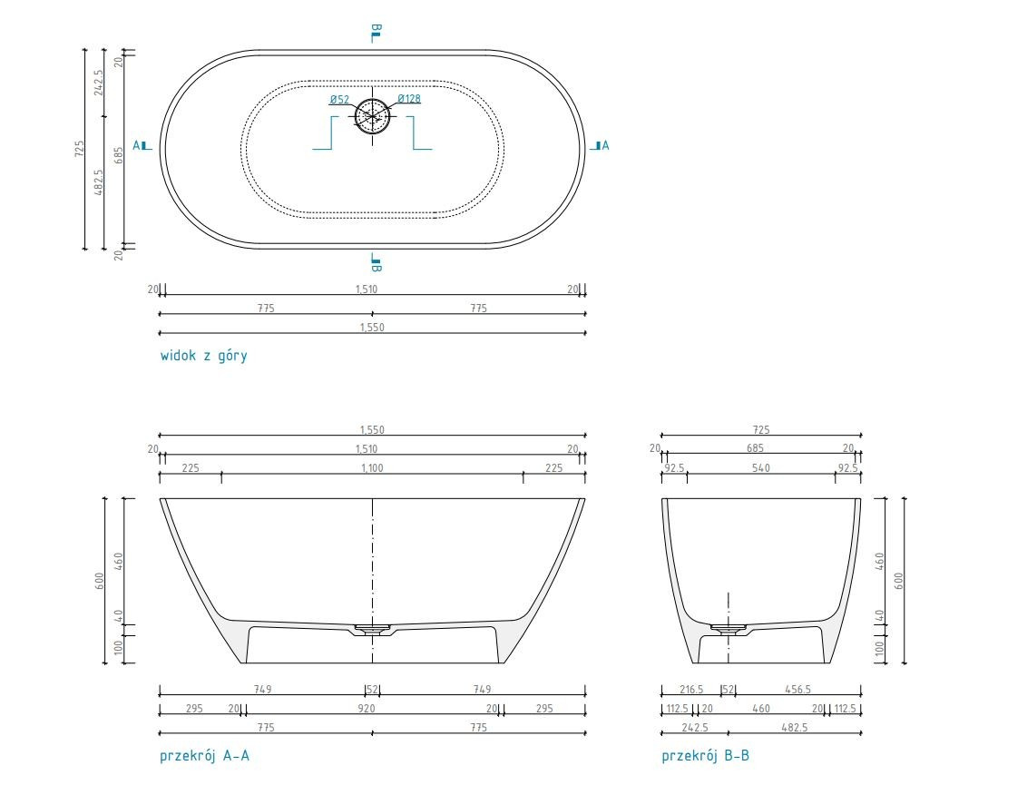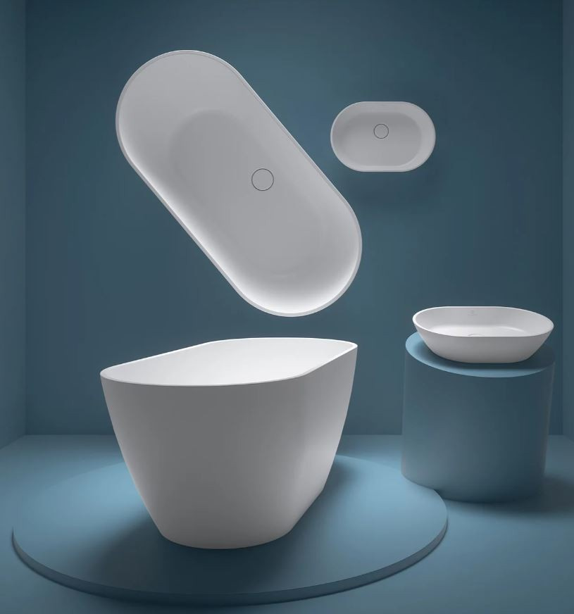 Wanna SALMA ma harmonijny, syntetyczny owalny kształt i wąskie nowoczesne ścianki.