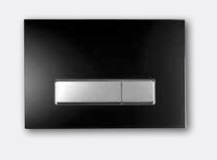 Płytka spłukująca Ambiente od firmy Werit. Przycisk spłukujący wykonany z czarnego szkła, w wykończeniu połysk, z chromowymi przyciskami, dedykowany do stelaży podtynkowych firmy Werit. Rozmiar przycisku: 15.5X22.8.