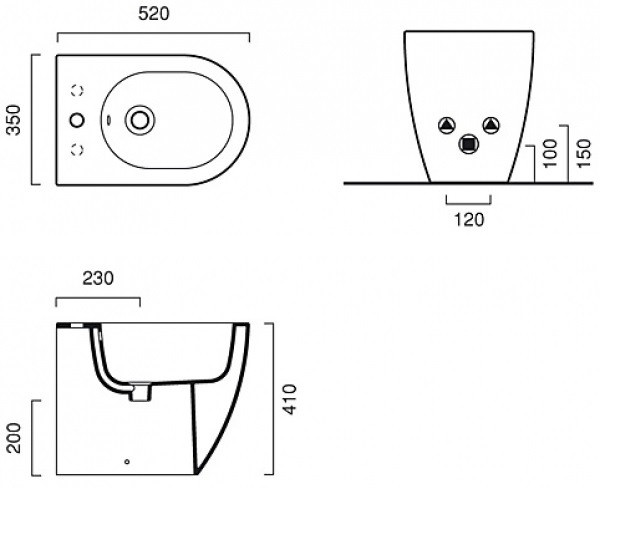Bidet Sfera 35x52 jest opcją stojącą, posiada otwór na baterię bidetową.